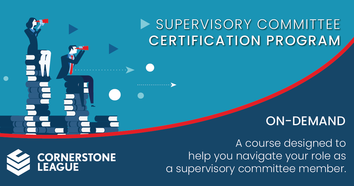 Register now for newly launched on-demand courses, Supervisory Committee Certification Program and Comprehensive Credit Union Board Course. This series of on-demand courses will introduce you to various roles and positions in credit unions, credit union committees, how to create a sustainable culture, and more. By completing this series of courses, you will gain valuable insight that can benefit your credit union and your members.