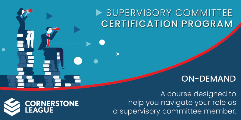 Registration for Cornerstone’s on-demand training is coming to a close. This is your last chance to register for the Supervisory Committee Certification Program and Comprehensive Credit Union Board Course. This enhanced series of on-demand courses offers valuable insight that will help cultivate your leadership skills. By exploring pertinent topics related to credit union roles and positions, you can develop an enlightened perspective from subject matter experts.