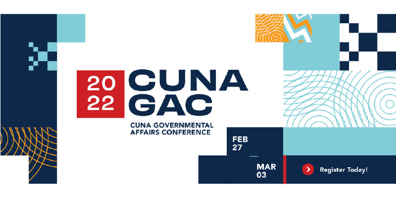Credit Union National Association and Cornerstone League invite you to join us for the 2022 CUNA Governmental Affairs Conference, Feb. 27–March 3, to rally around our united cause and tell legislators how their decisions affect credit unions and their 120 million members.